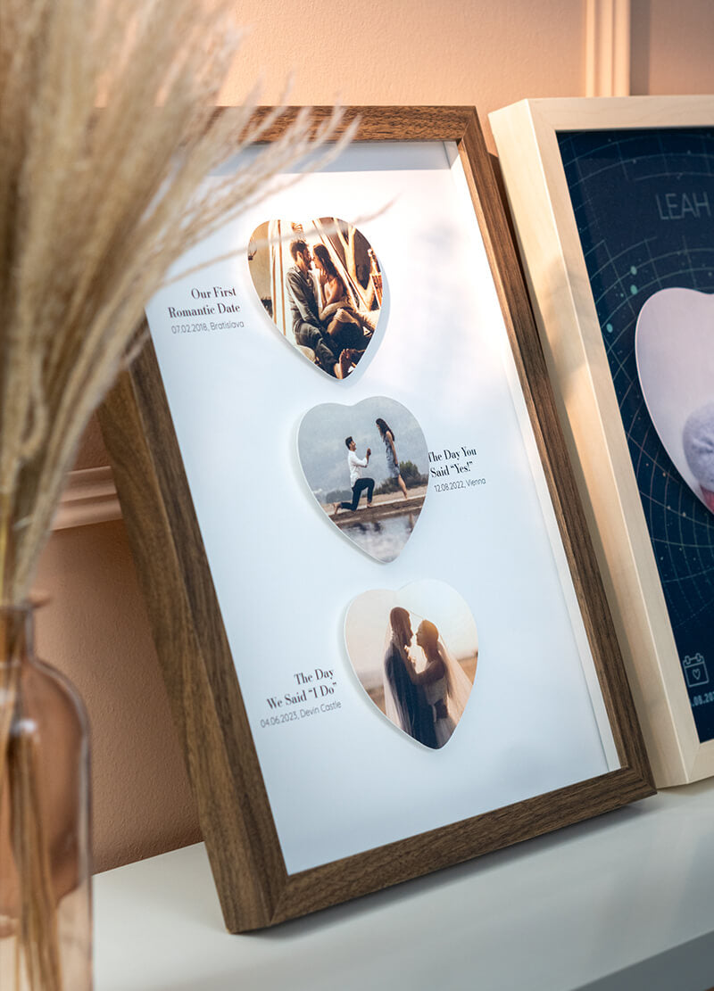 Beautiful designs that celebrate your beginning, milestones and adventures. Elegantly framed with modern floating photos. 30x40 centimeters big.
