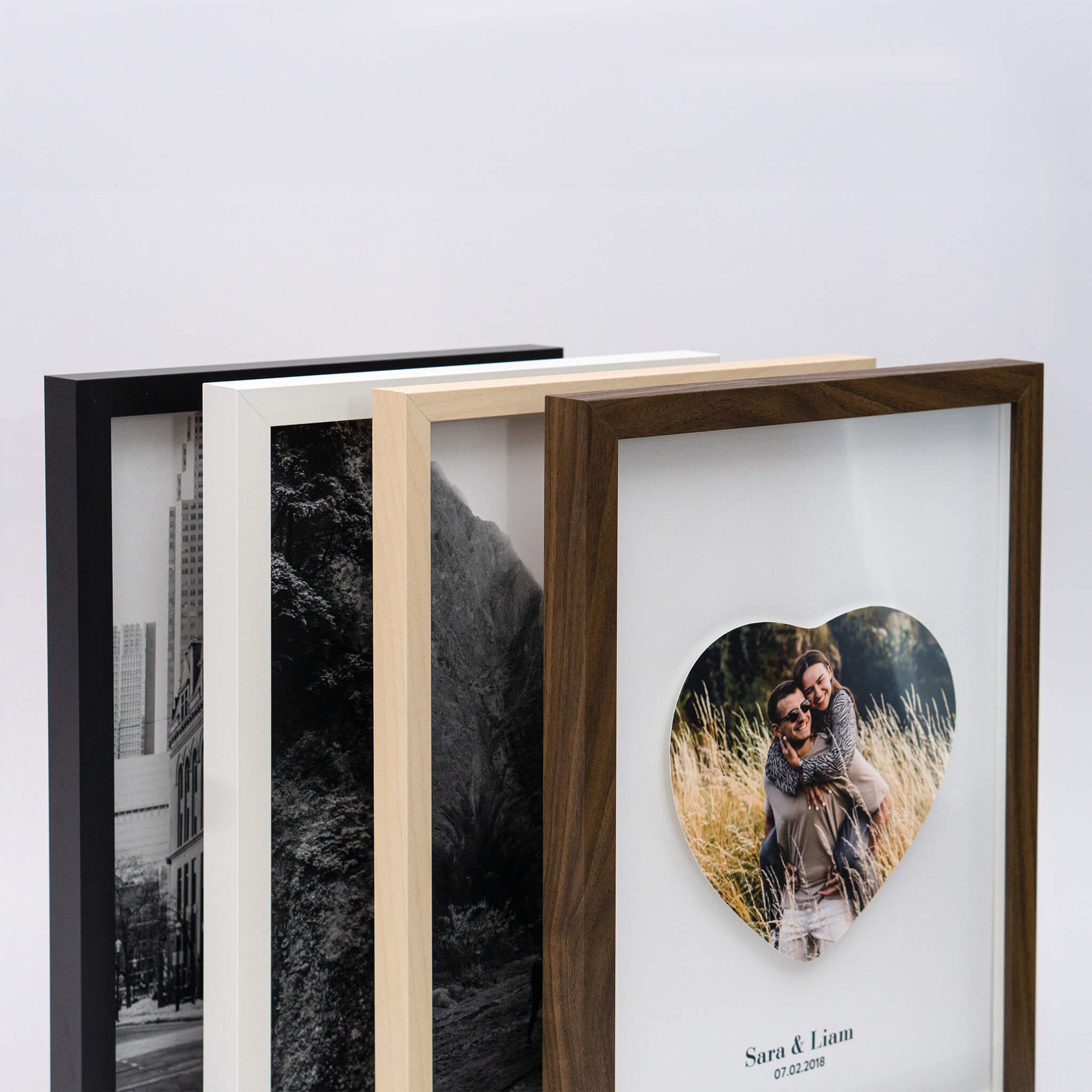 Photos are mounted 6mm (¼") above the background, creating a stunning floating effect within the frame. This design detail gives each piece a modern and sophisticated look.