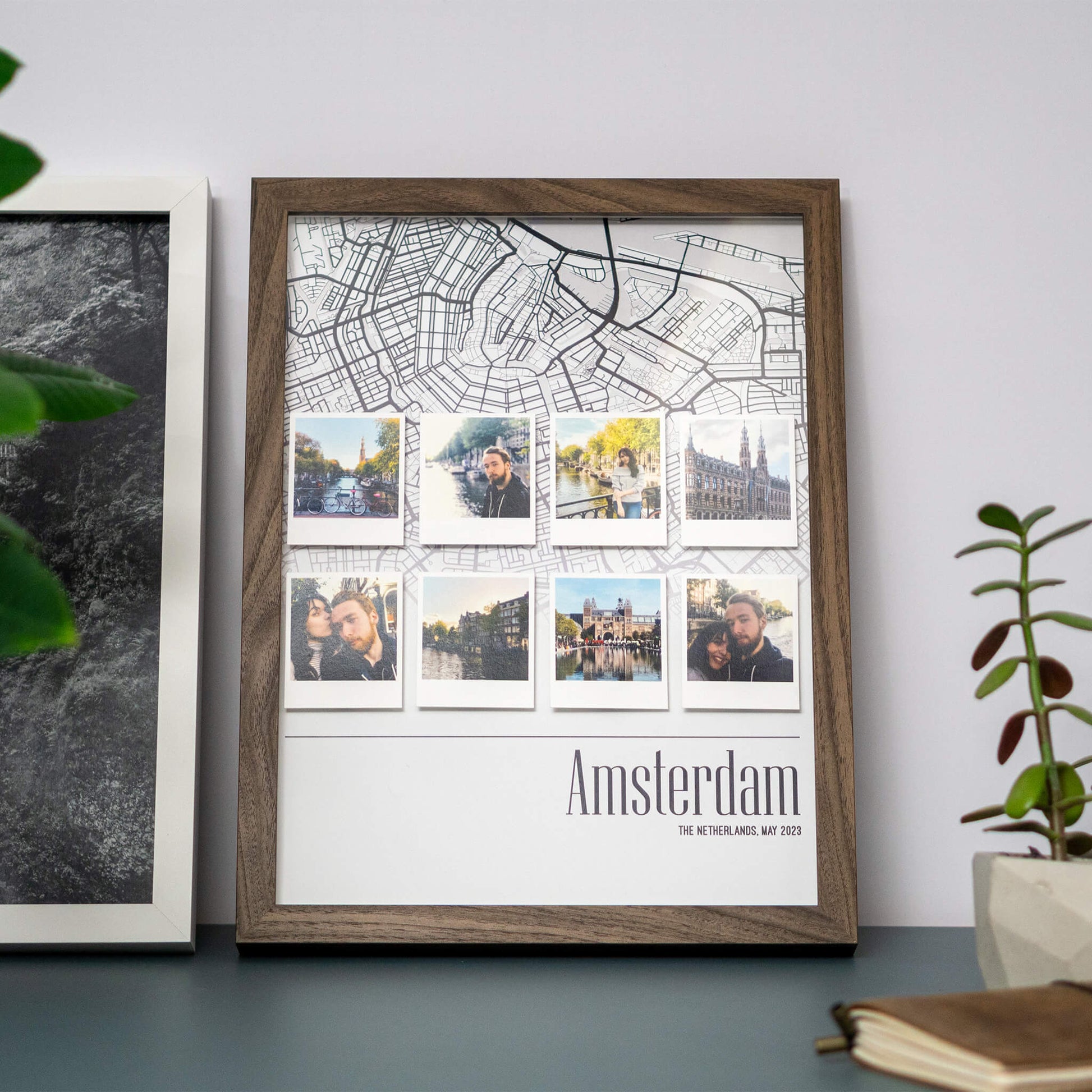 Obraz si personalizujete pomocou mapy ľubovoľného miesta na svete a 8 vlastných fotografií, vďaka čomu sa stane dokonalou spomienkou na vaše významné výlety a dovolenky.