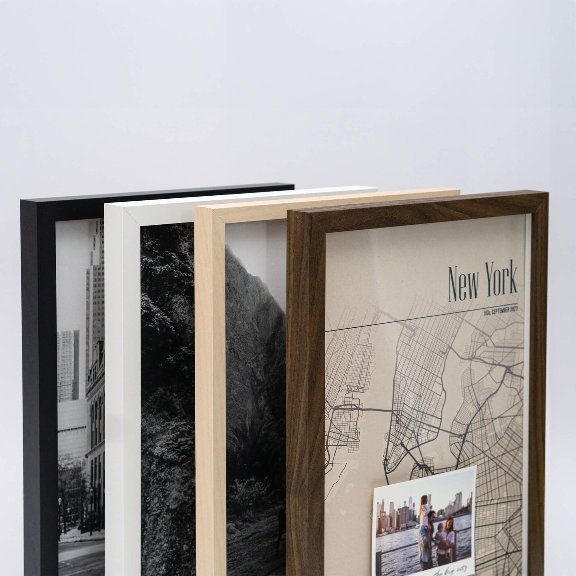 Fotografie sú uchytené 6 mm nad pozadím, čo vytvára nádherný vznášajúci sa efekt vo vnútri rámu. Tento detail dodáva každému obrazu moderný a sofistikovaný vzhľad.